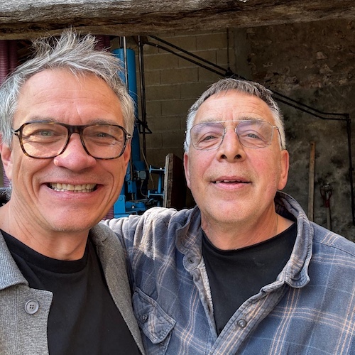 Nächste Station ist bei Vincent Bernard. Er arbeitet seit einigen Jahren mit Marie-Noëlle Ledru und hat einen Teil ihrer winzigen Weinbergsfläche übernehmen können. Ja, die Marie-Noëlle Ledru, die in der Champagne eine Legende ist und sich nach dem Jahrgang 2019 zur Ruhe gesetzt hat. Aber eigentlich stimmt das nicht. Sie ist immer noch agil und aktiv. Champagnermachen ist ihr Lebenselixier. So werden die Champagner von Vincent Bernard im Keller von Marie-Noëlle erzeugt. Sie machen das zusammen. Sie zeigte ihm, wie es geht, und hat alles im Auge. Vincent Bernard steht drauf, Marie-Noëlle und Vincent stecken drin. Ende November kommen die ersten Flaschen. Und im Moment noch erhalten wir von ihr im jeden Frühling rund 50 Flaschen, bis ihre alten Bestände in den nächsten Jahren mal erschöpft sein werden.